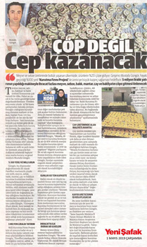 YeniŞafak Gazetesi’ KOBİ Sayfasında Manşet Olarak Yer Alan Haberimiz 01/05/2019ÇÖP DEĞİL, CEP KAZANACAK. Meyve ve sebze üretiminde bolluk yaşanan ülkemizde, ürünlerin %25’i çöpe gidiyor. Girişimci Mustafa Güngör, hayata geçirdiği %100 yerli ‘Kurutma Fırını Projesi’ ile üreticiye büyük kazanç sağlamayı hedefliyor. 5 milyon liralık yatırımın yapıldığı makineyle ihracat fazlası meyve, sebze, balık, mantar, çay ve bakliyatın...Devamını Oku